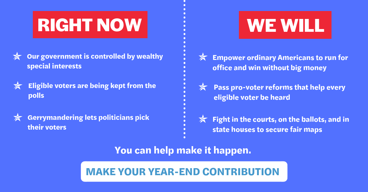 Together, we can build a democracy in which every voice is represented, not just the voices of a few, wealthy special interests.