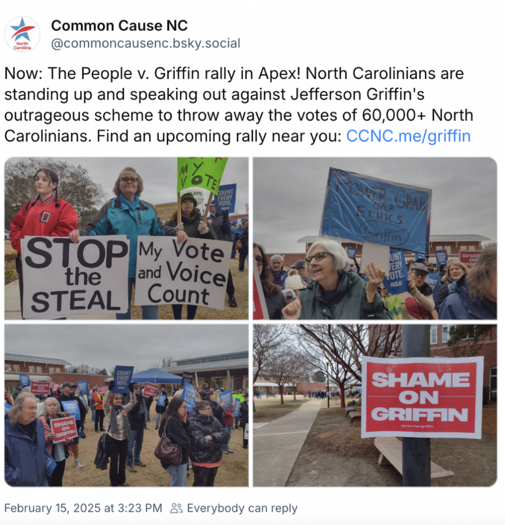 Last weekend, Common Cause North Carolina organized 16 rallies across the state drawing thousands of people out for their “The People v Griffin” campaign.