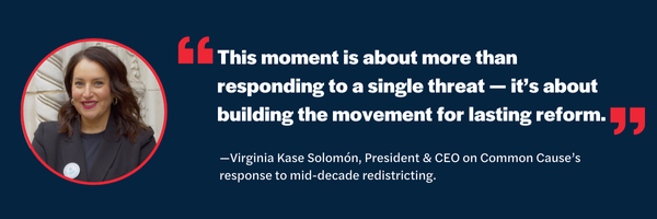 As President Trump attempts to rig our redistricting systems to make himself king, states will continue to fight back. Common Cause is ensuring that no matter what happens, the people have a nonpartisan way to evaluate any mid-decade redistricting effort that happens in their state. Voters deserve to stay informed on how their vote could be impacted, and we’re providing the tools to help navigate uncharted waters.