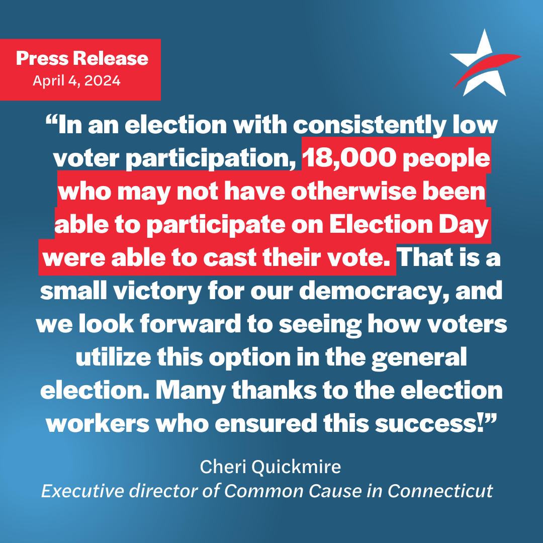 “康涅狄格州是最后几个实施提前投票的州之一,在没有资金开展强有力的教育活动来告知选民这一新选择的情况下,这已经是一个很好的结果。为了确保该计划在未来的选举中取得成功,我们敦促立法机构为我们的选举管理人员提供他们所需的资金。”