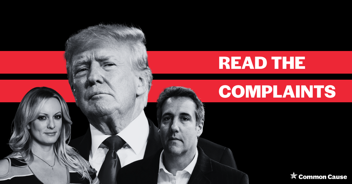 Zu diesem Zeitpunkt war die Quelle der $130.000 unbekannt – und Common Cause nannte sowohl die Trump Organization als auch „John Doe“ als mögliche Quellen. Im März 2018 änderte Common Cause jedoch seine Klagen, basierend auf öffentlichen Aussagen von Micheal Cohen, in denen er behauptete, er habe die Gelder an Frau Daniels gezahlt. Daraufhin behauptete Common Cause, Cohen habe der Trump-Kampagne illegal hohe Sachspenden geleistet.