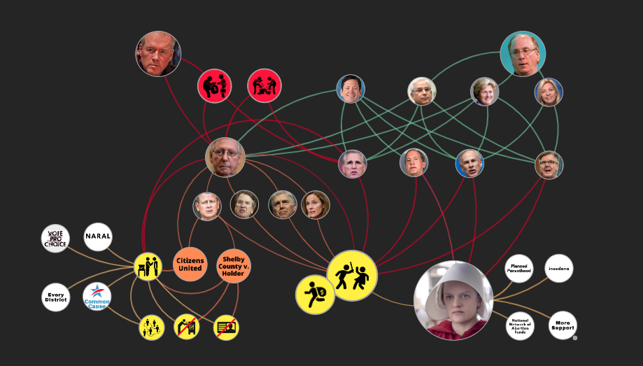 Wegbringen Verbinden Sie die Punkte und machen Sie es den Menschen leichter, den Zusammenhang zwischen politischen Spenden, der Manipulation der Gerichte und der Bedeutung der Stimmabgabe zu erkennen.