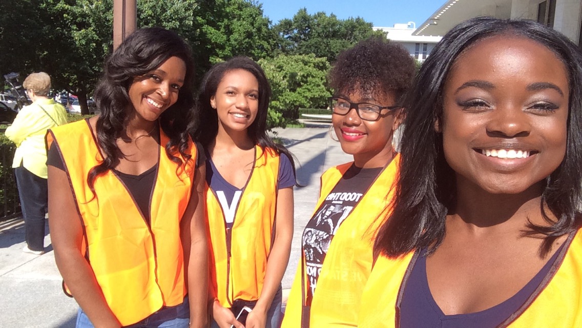 Love Caesar (right), pictured here with her friends and fellow organizers, is a student at NC A&T and a Democracy Fellow at Common Cause North Carolina.