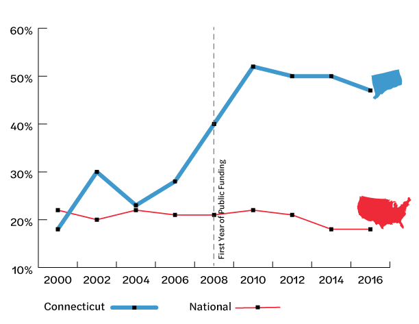 Beginnend mit der ersten Durchführung des Bürgerwahlprogramms unternahm Connecticut große Schritte in Richtung einer repräsentativeren und reflektierenderen Demokratie.