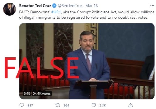 Unfortunately, the fact that these lies have been easily and repeatedly debunked doesn’t stop them. Just one example: Senator Ted Cruz tweeted that passing the For the People Act would allow “millions of illegal immigrants to be registered to vote and to no doubt cast votes.”