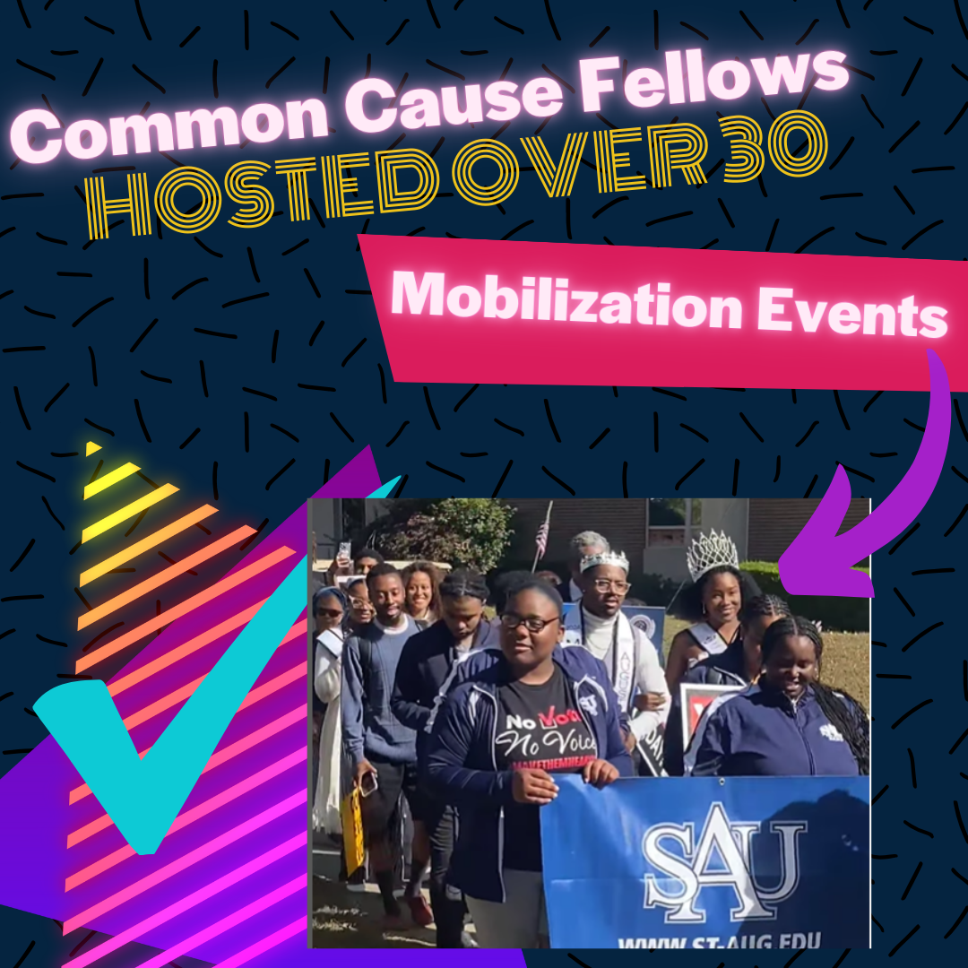 Mula sa pagpaparehistro ng botante hanggang sa pagbibigay ng hindi partidistang impormasyon ng kandidato, nag-host kami 71 pagtatanghal ng mga kaganapan sa buong bansa. Ang bawat tabling event ay pinlano ng isa sa aming mga miyembro ng kabataan. Kasama nila ang mahalagang impormasyon sa halalan, Common Cause swag at siyempre mga magagandang meryenda! Sa pamamagitan ng mga kaganapang ito libu-libong mga mag-aaral ang nakatanggap ng impormasyon sa mga kandidato, kung paano bumoto sa pamamagitan ng koreo, kung saan makakahanap ng tumpak na impormasyon sa pagboto, at kung paano matiyak na ang kanilang pagpaparehistro ng botante ay napapanahon. Nakapagrehistro kami ng daan-daang bagong botante sa tamang oras para bumoto para sa halalan sa pagkapangulo sa 2024.