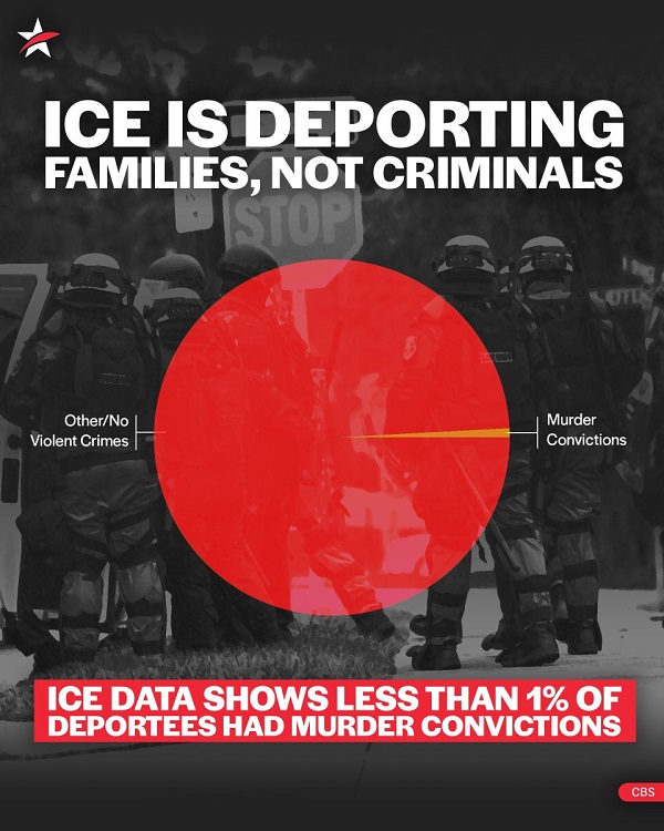 ICE says it’s going after “violent criminals.” But the truth? Less than 1% of deportees had murder convictions. They’re tearing apart families, not protecting public safety.