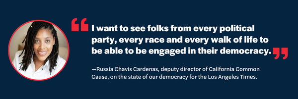 This moment serves as a reminder that we must not become complacent. The right to vote is under constant threat. That’s why Common Cause is calling for: