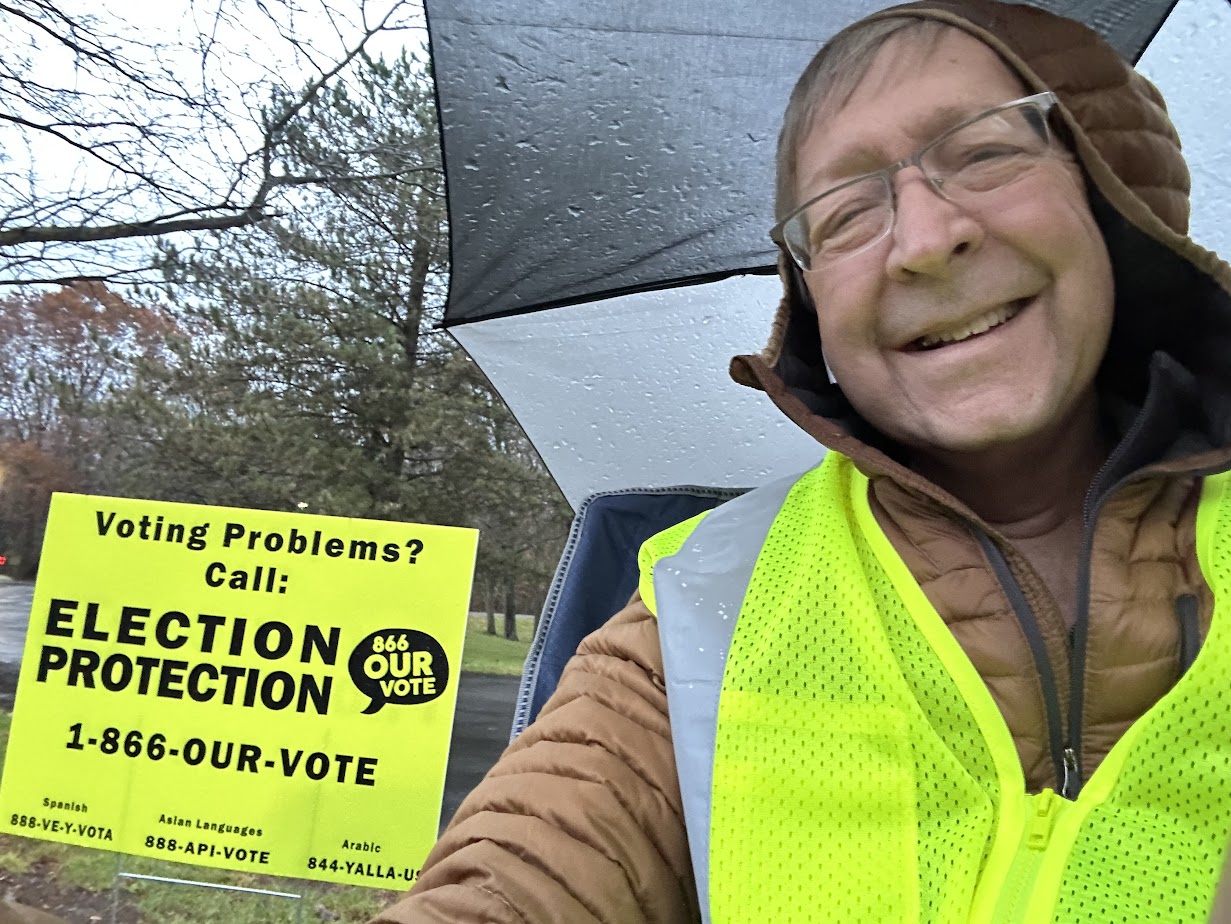 Grâce à vous, sur 12000 bénévoles non partisans extraordinaires se rendent aux urnes aujourd'hui, en veillant à ce que chaque électeur puisse voter sans être intimidé. Voici l'une de nos bénévoles du Michigan, Tina, en action ce matin :