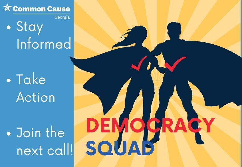 This is your 30-minute space to stay informed on what's happening in Georgia and find out how you can take action. We'll share the latest updates from Common Cause Georgia, current calls to action, and what we're watching at the state level and we want to hear from you too. What's happening in your community? What issues matter most to you? What do you want to see us do?