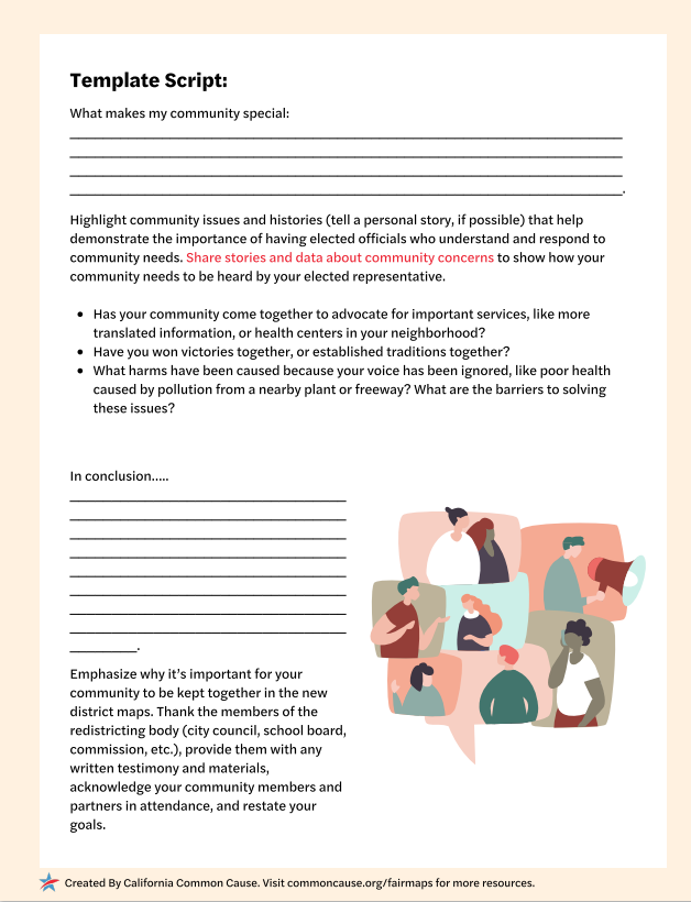 Cung cấp hướng dẫn và hỗ trợ để bạn có thể lập kế hoạch cho những gì bạn muốn nói với những người có thẩm quyền phân chia khu vực bầu cử.