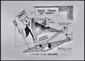 Tôi đã tham gia Hội đồng Tiểu bang Nguyên nhân Chung của Nebraska vào năm 1985 trong bối cảnh nỗ lực lớn nhằm giải quyết cải cách tài chính chiến dịch. Chủ tịch Hội đồng Bill Avery và thành viên hội đồng Ruth Thone đã được giao trách nhiệm thành lập một lực lượng đặc nhiệm gồm các bên quan tâm để xem liệu có thể làm gì để giảm chi tiêu cho chiến dịch hay không. Một mối quan ngại lớn là một số chiến dịch lập pháp của tiểu bang đã chi tiêu vượt quá $100.000.