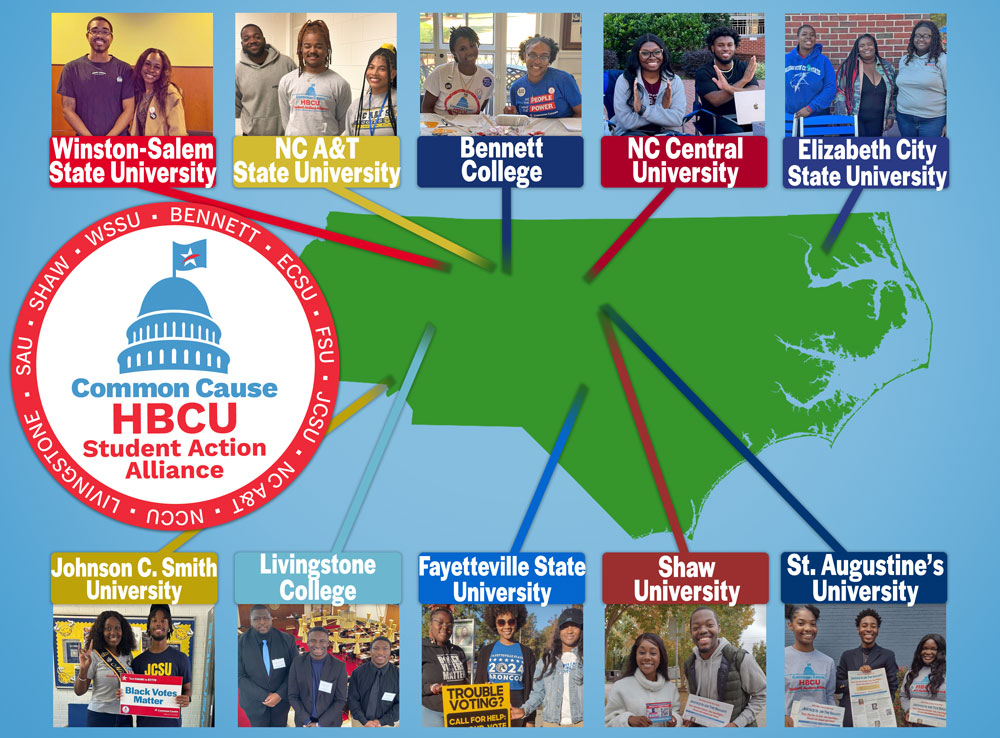 Through the HBCU Student Action Alliance, our Common Cause NC Democracy Fellows are active at all 10 HBCU campuses in North Carolina.
