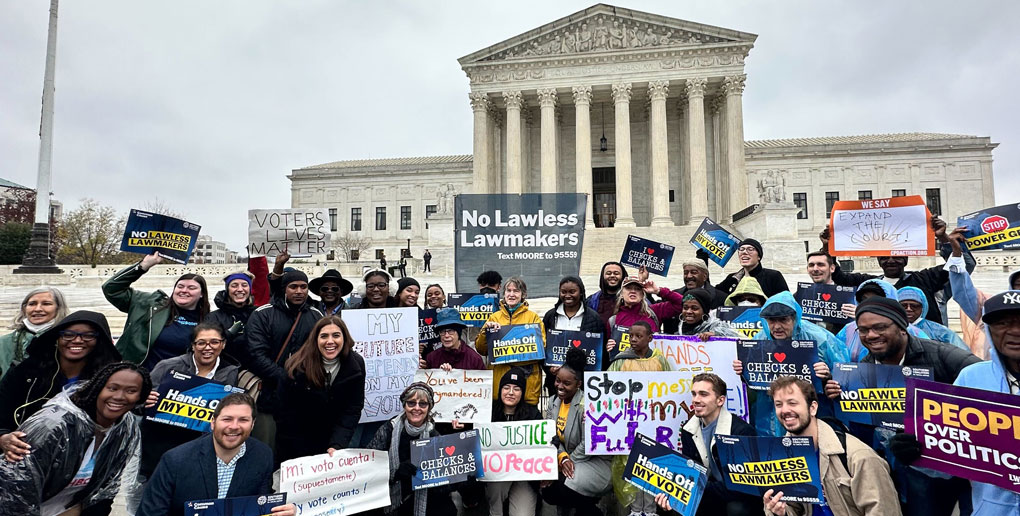 우리는 노스캐롤라이나 주의 투표권 보호에 앞장서고 있습니다. 우리와 민주주의를 지지하는 파트너들은 사전 투표를 포함한 필수적인 투표 접근성을 보존하기 위해 성공적으로 싸워왔습니다. 우리는 유권자 반대 게리맨더링에 맞서 역사적인 승리를 거두었습니다. 그리고 가장 최근에는 미국 대법원에서 역사적인 승소를 거두었습니다. 무어 대 하퍼우리 주의 연방 선거를 장악하려던 극단주의 정치인들의 급진적인 권력 장악을 저지했습니다. 노스캐롤라이나 전역의 유권자들에게 투표권을 보호하고 힘을 실어주기 위해 우리의 중요한 노력은 매일 계속되고 있습니다.
