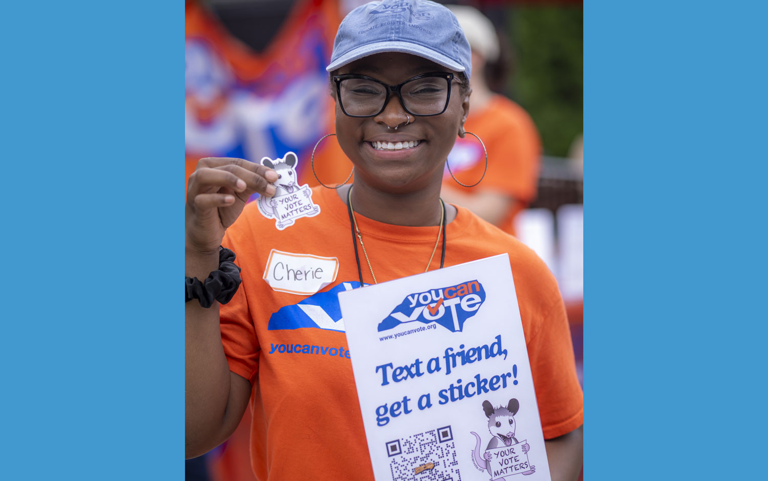 Một tình nguyện viên của You Can Vote giúp mọi người đăng ký bỏ phiếu tại CAROLINADAZE ở Raleigh