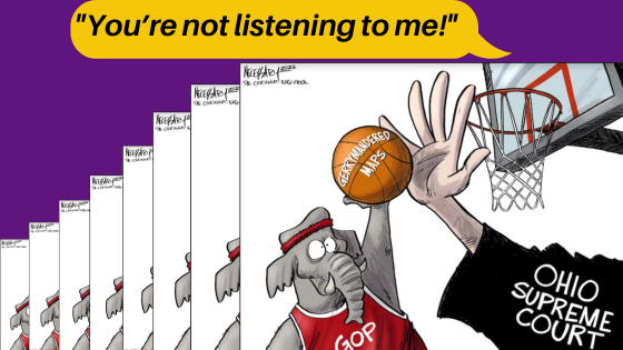 Din păcate, strategia majorității de a trimite în mod repetat hărți cu gerrymandered în timp ce epuizați ceasul funcționează bine pentru membrii GOP ai Comisiei de redistricție din Ohio. Instanța federală, invocând îngrijorări cu privire la posibila calendarizare a alegerilor primare, a declarat deja că, dacă o nouă hartă nu ar fi adoptată până pe 28 mai, ar da instrucțiuni Comisiei să folosească al treilea set de hărți - chiar dacă acest set s-a dovedit a fi neconstituțional de către Curtea Supremă din Ohio.