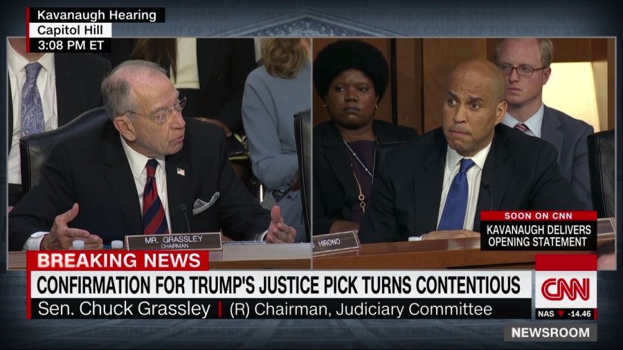 Senador Booker: "Ito ay isang pagtatangka na maging ganap na kagamitan upang gawin ang ating tungkulin sa konstitusyon, na siniseryoso ng lahat, mga Republikano, at mga Demokratiko, sa komiteng ito. Napakahirap na gampanan ang ating tungkulin ng payo at pagpayag kapag wala tayong masusing pagsusuri sa background ng kandidato. Sa mga lugar kung saan siya - ang kandidato mismo - ay tinukoy bilang ang pinakapormal na bahagi ng kanyang legal na panahon, kung saan siya mismo ay nag-uusap tungkol sa kung gaano siya kahalaga sa kanyang legal na karera, kung saan siya mismo ay nag-uusap tungkol sa kung gaano siya kahalaga sa kanyang legal na karera, kung saan siya mismo ay nagsasalita tungkol sa kung gaano siya kahalaga sa kanyang legal na karera, tinanggihan ang buong pagsusuri. Ipinaaalala ko sa iyo na ikaw mismo [Grassley], ay humingi ng limitadong hanay ng mga dokumento noong siya ay nasa opisina ng White House Counsel, ikaw mismo, ang nagtakda ng pamantayang iyon, ginoo, hindi namin natanggap ang mga dokumento.